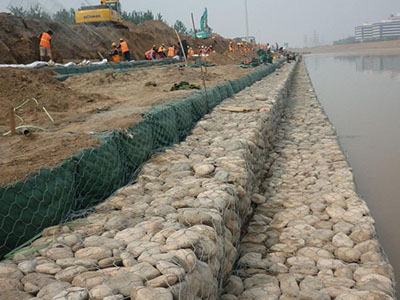 石籠網(wǎng)是使填石固定就位的鐵絲或聚合物絲網(wǎng)格式制作物。鐵絲籠是由鐵絲編織的網(wǎng)格或焊接而成的結(jié)構(gòu)物。這兩種結(jié)構(gòu)可以是電鍍的,編織的鐵絲箱可另外涂上PVC。用抗風(fēng)化堅硬石塊作填料,它在石箱或石籠沉排中不會因磨蝕而很快破碎。裝有不同類型的塊石的石籠有不同的特性。多角的塊石能相互很好地聯(lián)鎖在一起,用其填裝的石籠不易變形。